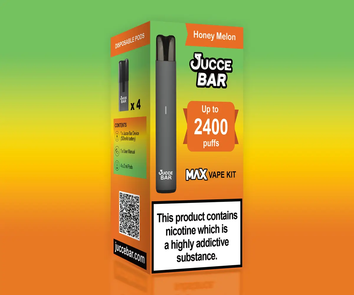 The Jucce Bar’s collection of disposable pods consistently delivers remarkable flavour with every draw. To fully enjoy each pod, simply remove the flavour-release tag from the top and wait for at least 60 seconds, allowing the liquid to saturate the coil. This guarantees a consistent, exquisite taste from the first to the last vape. Level up your vaping pleasure with the Jucce Bar Honey Melon Big Puff Vape Kit, available with convenient 2ml pods.