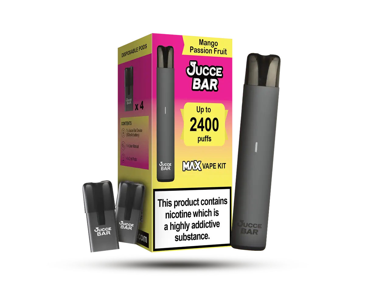 The Jucce Bar’s collection of disposable pods consistently delivers remarkable flavour with every draw. To fully enjoy each pod, simply remove the flavour-release tag from the top and wait for at least 60 seconds, allowing the liquid to saturate the coil. This guarantees a consistent, exquisite taste from the first to the last vape. Level up your vaping pleasure with the Jucce Bar Mango Passion Fruit Big Puff Vape Kit, available with convenient 2ml pods.