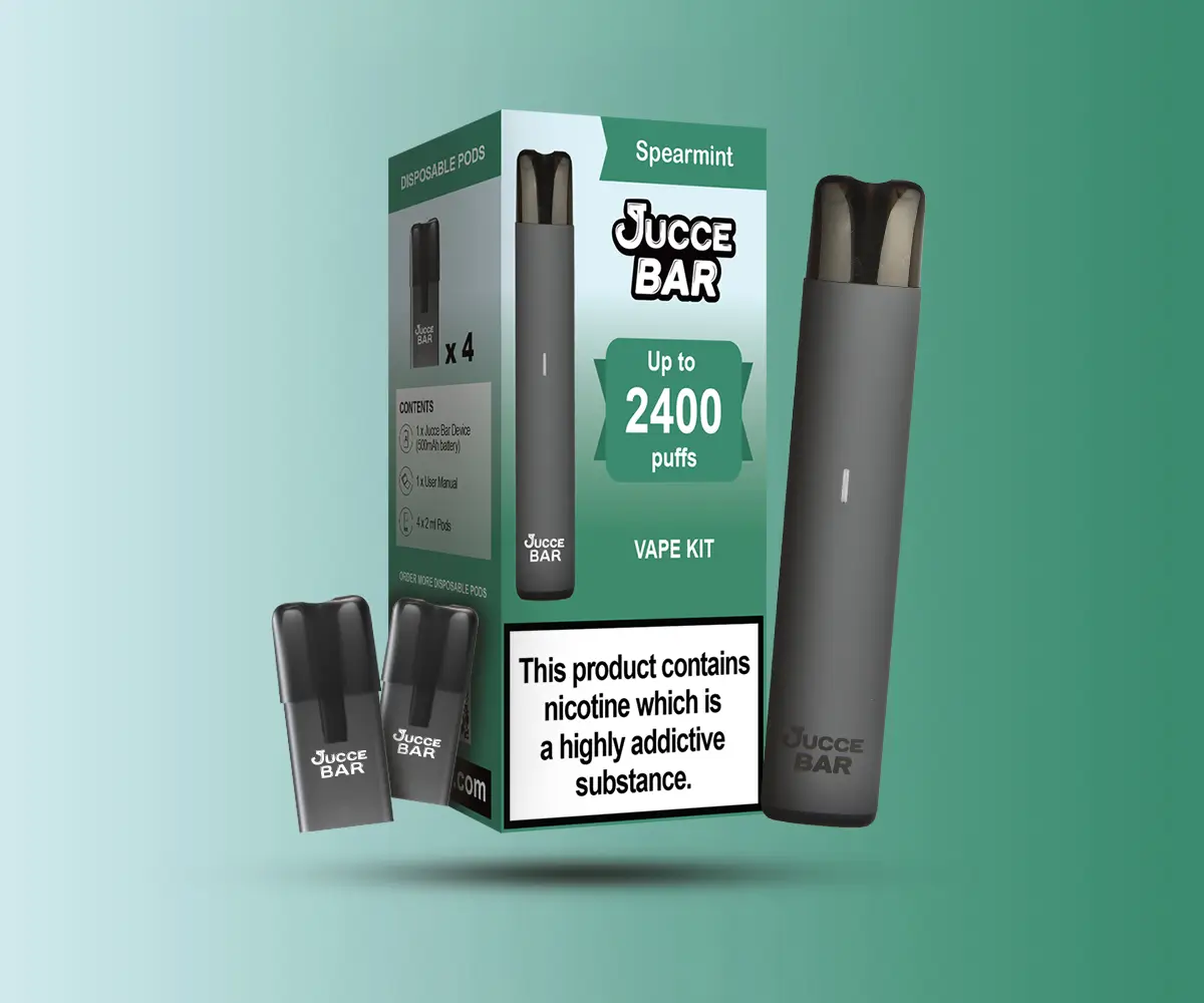 The Jucce Bar Spearmint Ice Big Puff Vape Kit offers a cool and refreshing spearmint flavour that’s crisp and invigorating. Designed with sophistication and simplicity in mind, this all-in-one kit ensures you’re ready to start your vape journey right out of the box with up to 2400 puffs.