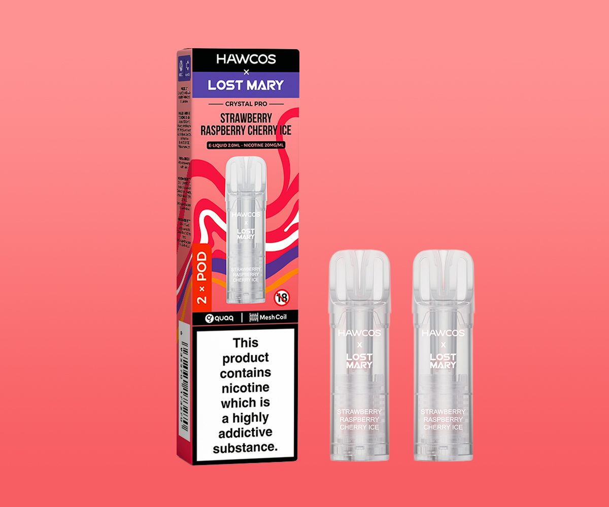 Each pack has 2 HAWCOS x Lost Mary Crystal Pro Pods, giving you up to 1200 puffs in total (up to 600 puffs per pod). The Strawberry Raspberry Cherry Ice flavour will awaken your senses and leave you wanting more.
